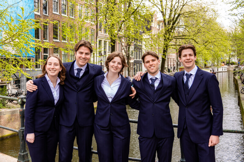 The VSAE board 2025 from left to right: Laura Wilde (Internal Affairs & Secretary), Thomas van Vechgel (Chair & External Affairs), Marlies Knetsch (Vice-Chair), Ben Zeitner (Treasurer, Innovation & Marketing) and Yuri Voppen (External Affairs).